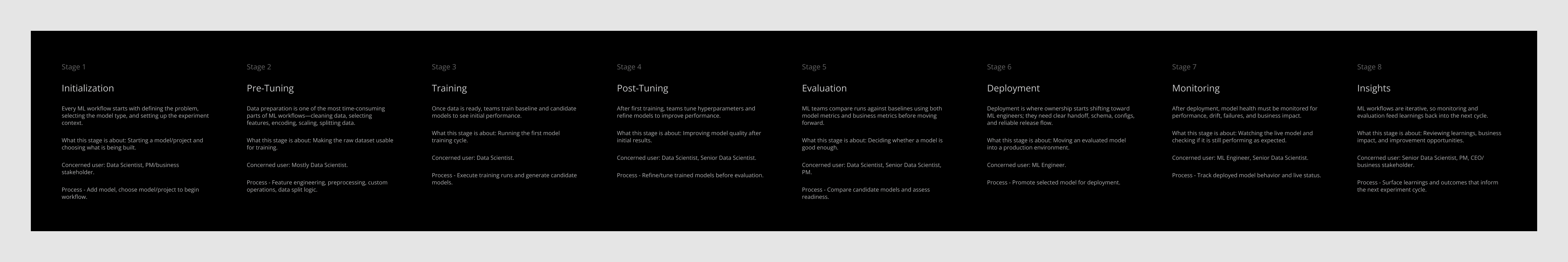 Make the ML lifecycle easier to follow through a stage-based workflow that supports both beginners and advanced users with the right level of guidance and control.