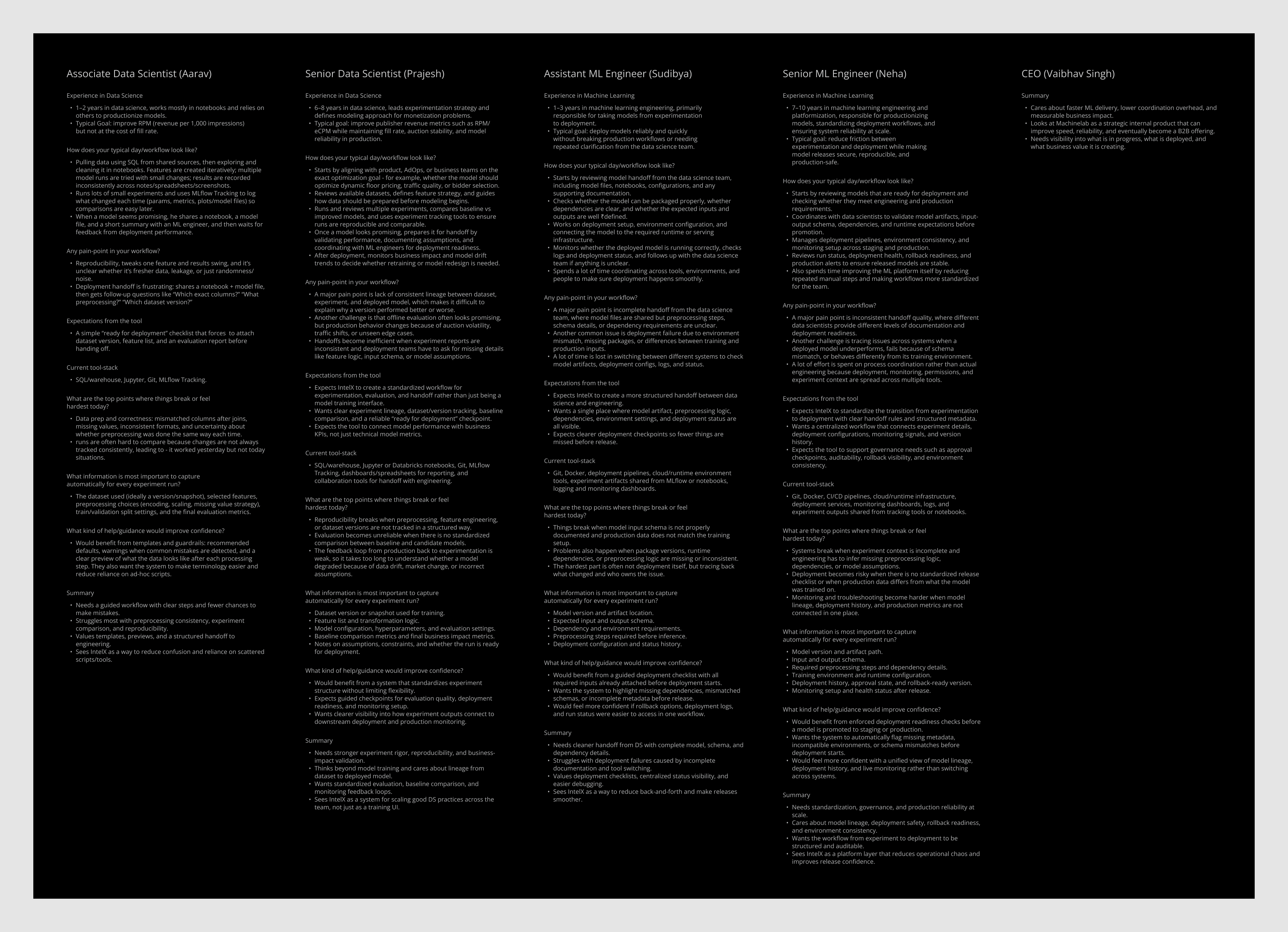 Conducted lightweight AI-assisted secondary research to quickly understand the machine learning space, its lifecycle, and the key tools and roles involved.